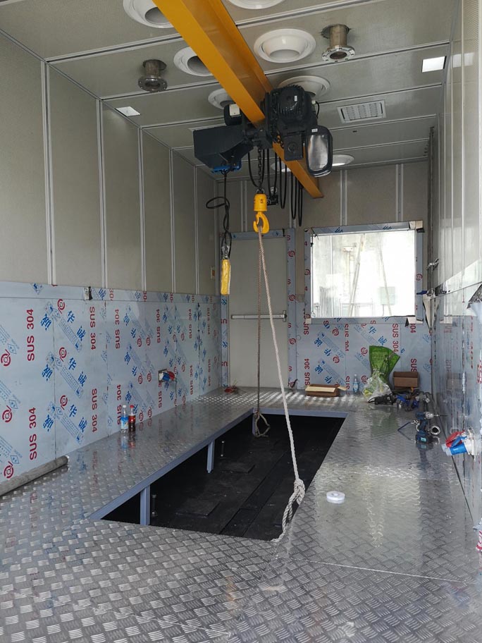 集裝箱內(nèi)照明及其他電控系統(tǒng)需遠離發(fā)動機和臺架排氣管等高熱源部位。